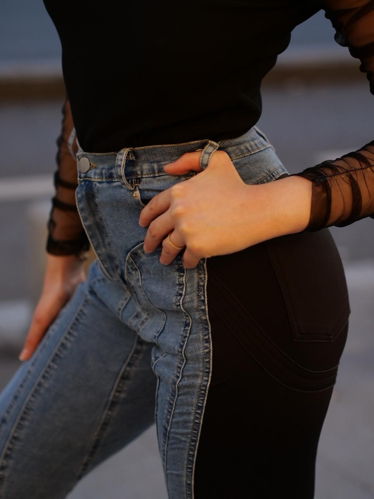 Fă loc în garderoba ta unei piese care sparge tiparele – blugii în două culori și texturi sunt alegerea perfectă pentru un look contemporan, cu personalitate. Combinația de negru clasic și albastru denim, alături de mixul de materiale, creează un efect vizual inedit și modern.