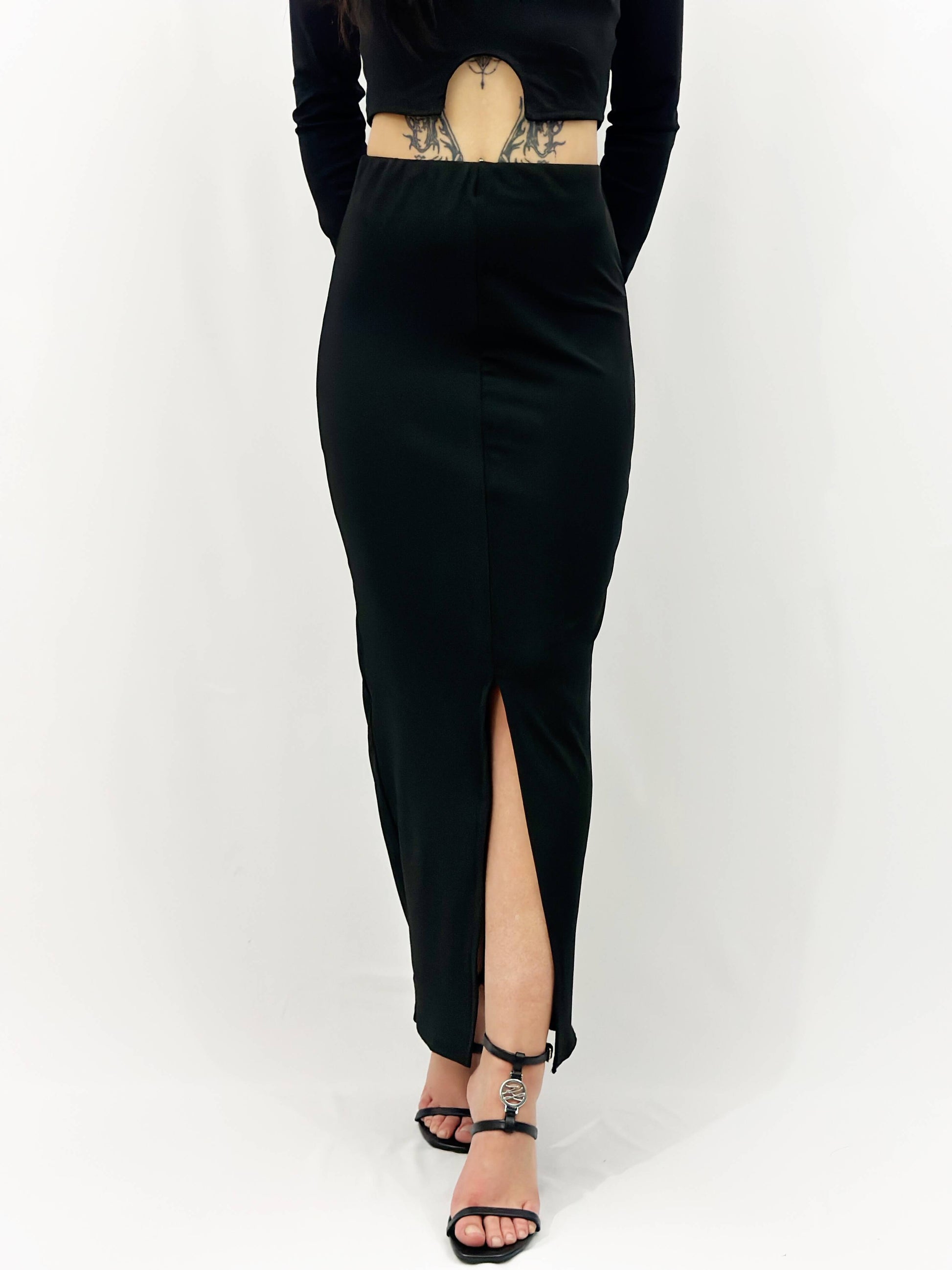 ✔ Fustă midi cu crăpătură pentru un plus de feminitate